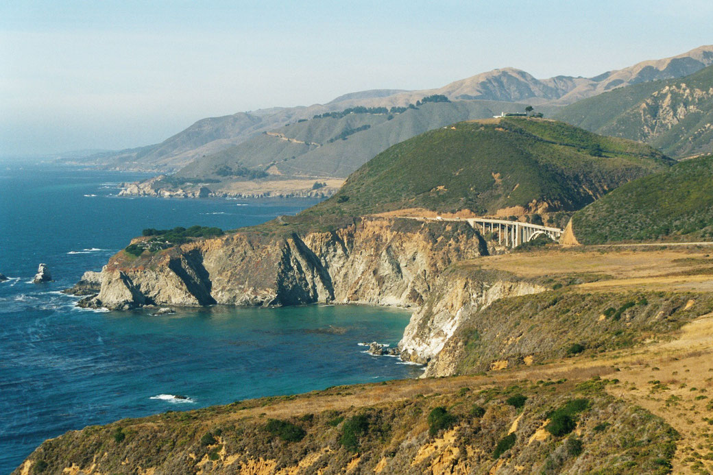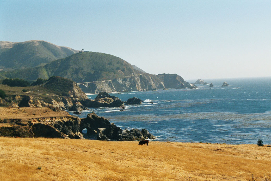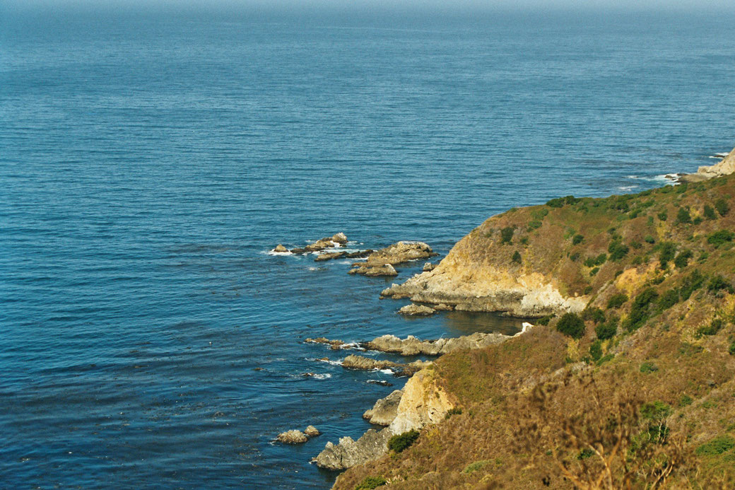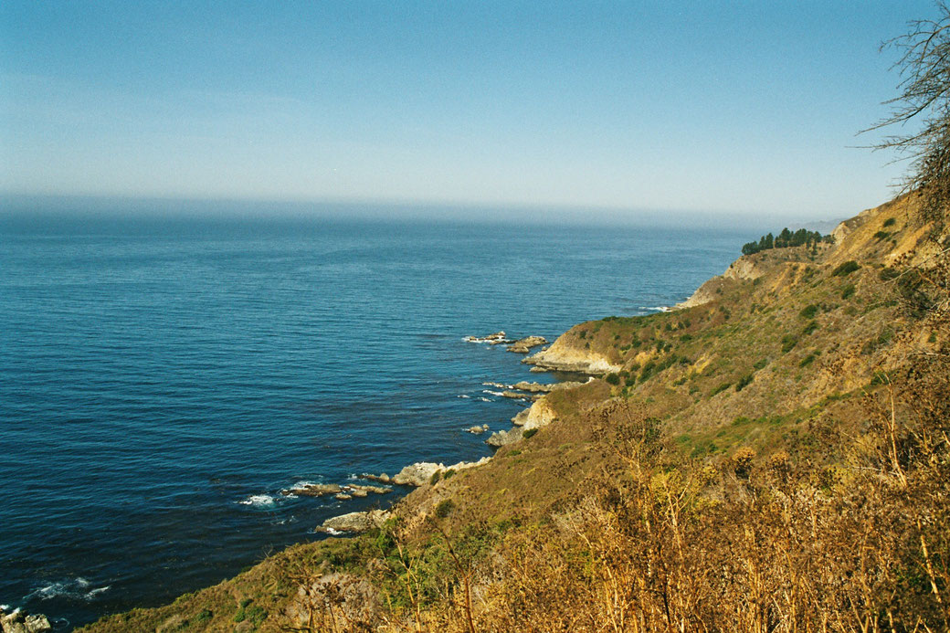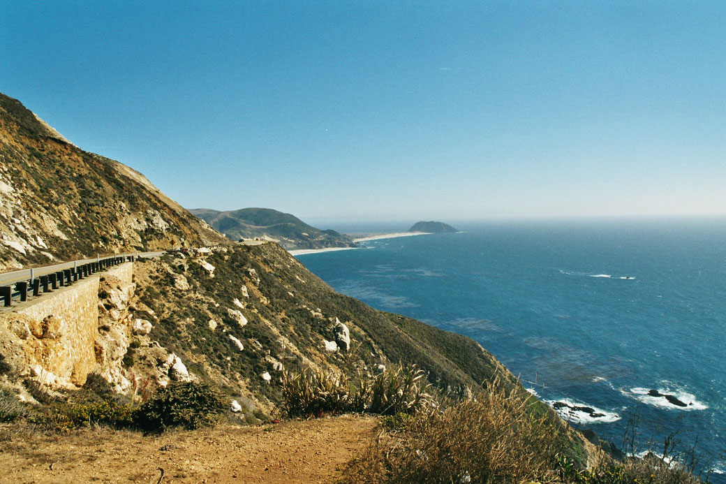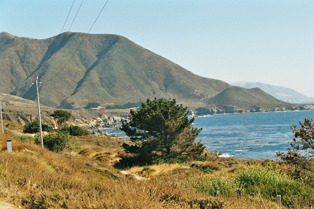 Die Landschaft ist interessant. Vor uns türmen sich hohe Berge und zur rechten Seite der Ozean. Das Wetter ist herrlich. Hier direkt am Pazifischen Ozean ist es durch den Wind aber nicht so warm wie im Landesinneren. Der Highway No. One hat schon einige scharfe Kurven und steile Strecken, die nur langsam zu befahren sind.