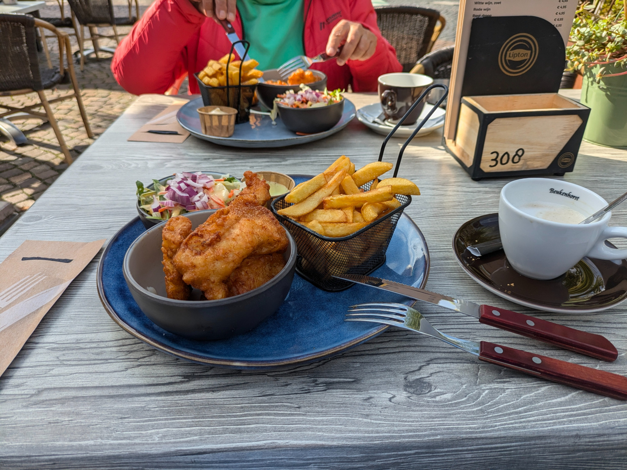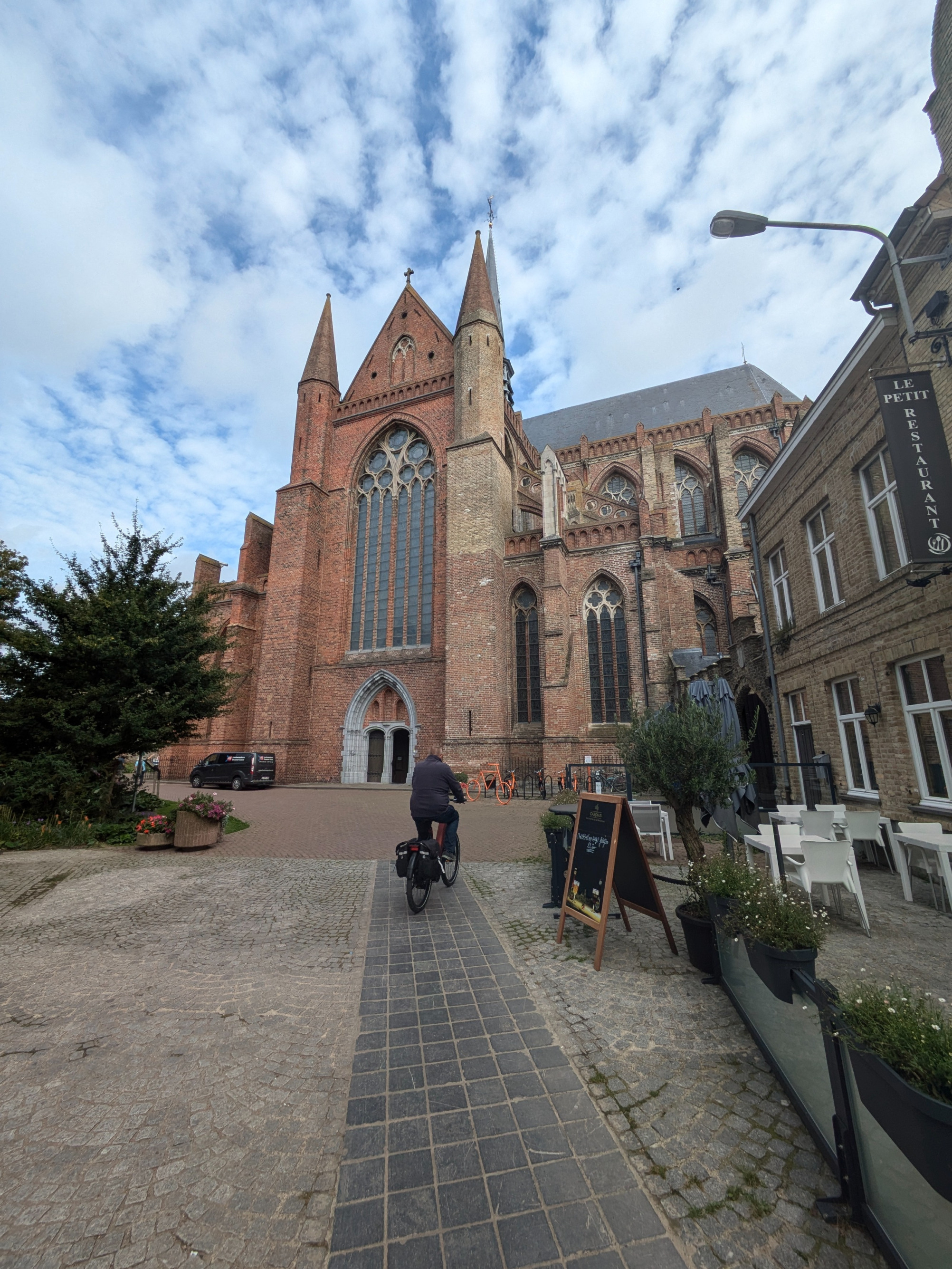 Am Sonntag war der große Freizeimarkt zu. Daher fuhren wir mit unseren E-Bikes eine von Komoot vorgeschlagene Fahrradroute zur Erkundung von Winterswijk. Auf dem Hinweg genossen wir am Markplatz in der Sonne ein Mittagessen. Auf dem Rückweg könnten wir uns dort noch einen Capucino.