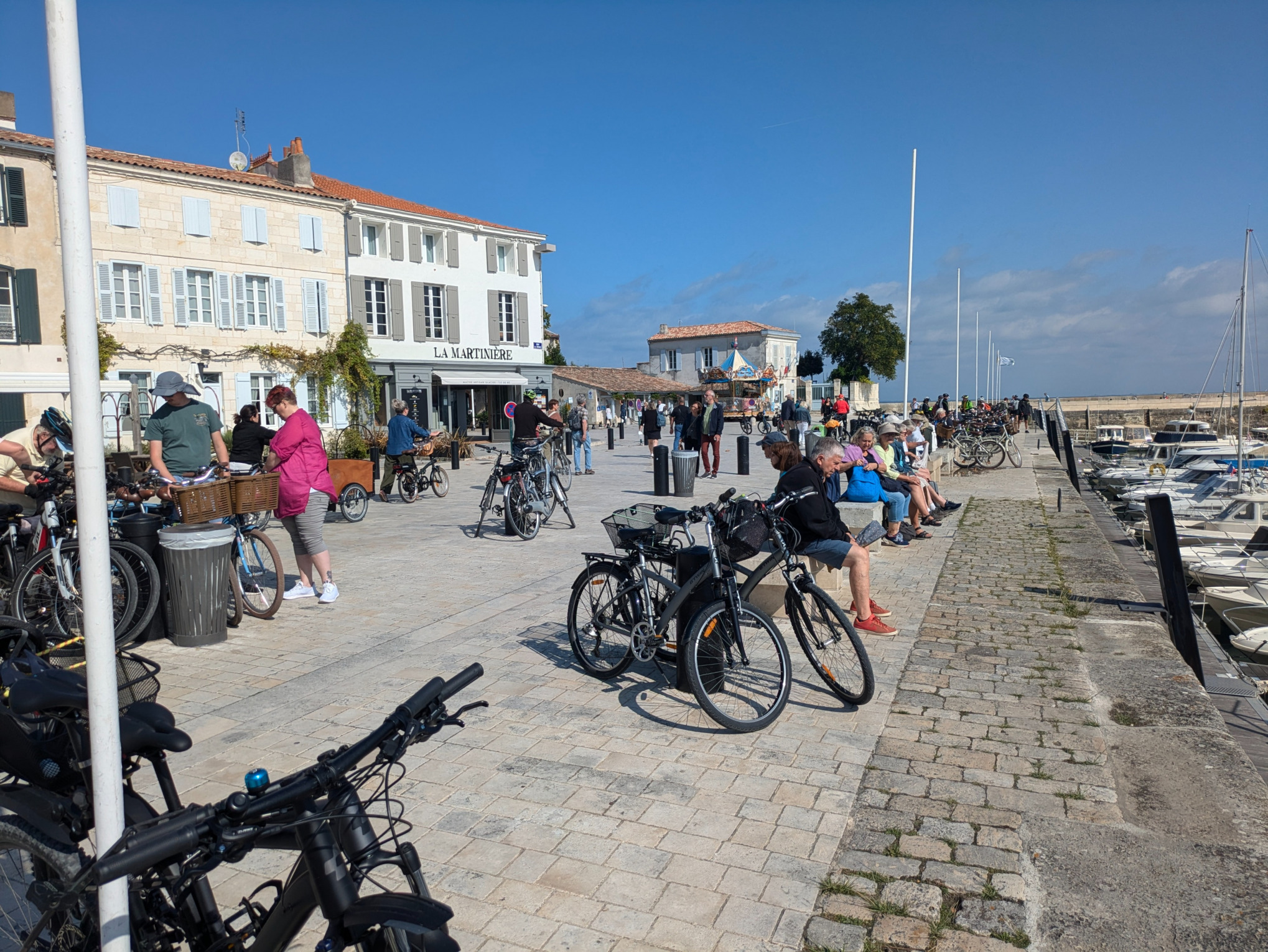 Die Insel hat auch Pinienwälder und Dünen, ideal für Spaziergänge oder Fahrradtouren. Die Île de Ré ist ein Paradies für Radfahrer, mit einem ausgedehnten Netz von gut gepflegten Fahrradwegen. Die Wochenmärkte in Dörfern wie Saint-Martin-de-Ré oder La Flotte bieten frische regionale Produkte, Meeresfrüchte und Handwerkskunst.