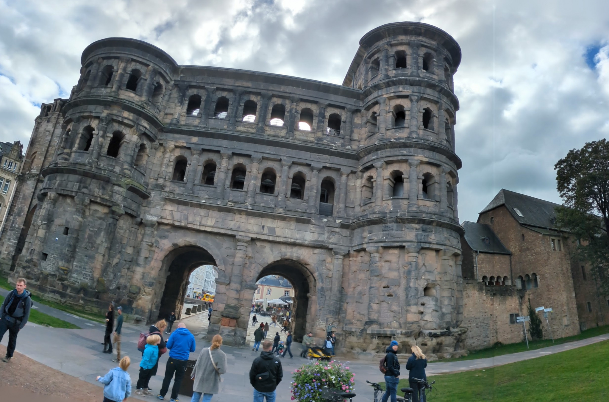 Wir fanden mit viel Glück noch einen Stellplatz mit Stromanschluß. Außerdem hatten wir das Glück, dass wir über Satelit Fernsehempfang hatten. Den Wohnmobilplatz Treviris besuchen wir schon seit Jahren. Der Platz war dieses Mal aber so voll, dass es in Bezug auf die sanitären Einrichtungen nicht mehr schön war. Wir blieben auch nur eine Nacht und fuhren nach einem kurzen Besuch mit dem E-Bike in der Stadt weiter.