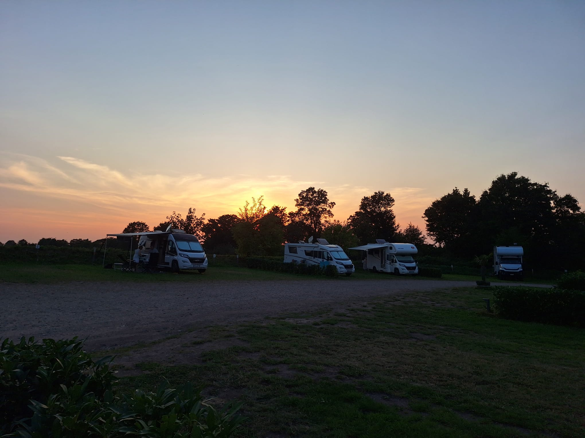 Ich brauchte sehr lange Zeit um einen halbwegs nutzbaren Stellplatz zu finden, auf dem ich wenigstens auf den Auffahrkeilen etwas gerade zu stehen. Es wurde aber trotzdem keine ruhige Nacht. Neben dem Platz befand sich das örtliche Schwimmhallenbad. Die Belüftungsanlage befand sich direkt neben dem Platz und verursachte einen Höllenlärm. Ohne Gehörstöpsel war an Schlafen nicht zu denken. Ich habe sie genutzt, sodass ich ca. 6 Stunden geschlafen habe und wir am nächsten Tag direkt weiter gefahren sind.