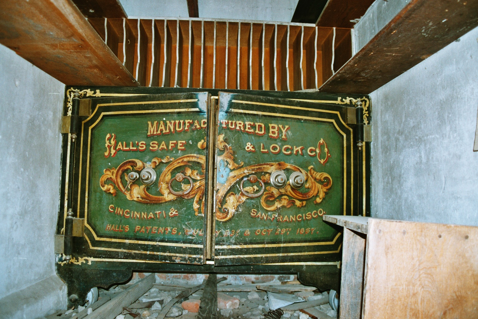 Der alte Tresor ist noch vorhanden. Wir können zwar ein Foto schießen. An den Tresor kommen wir aber nicht heran. Ich glaube, ansonsten hätte der auch schon Beine bekommen.