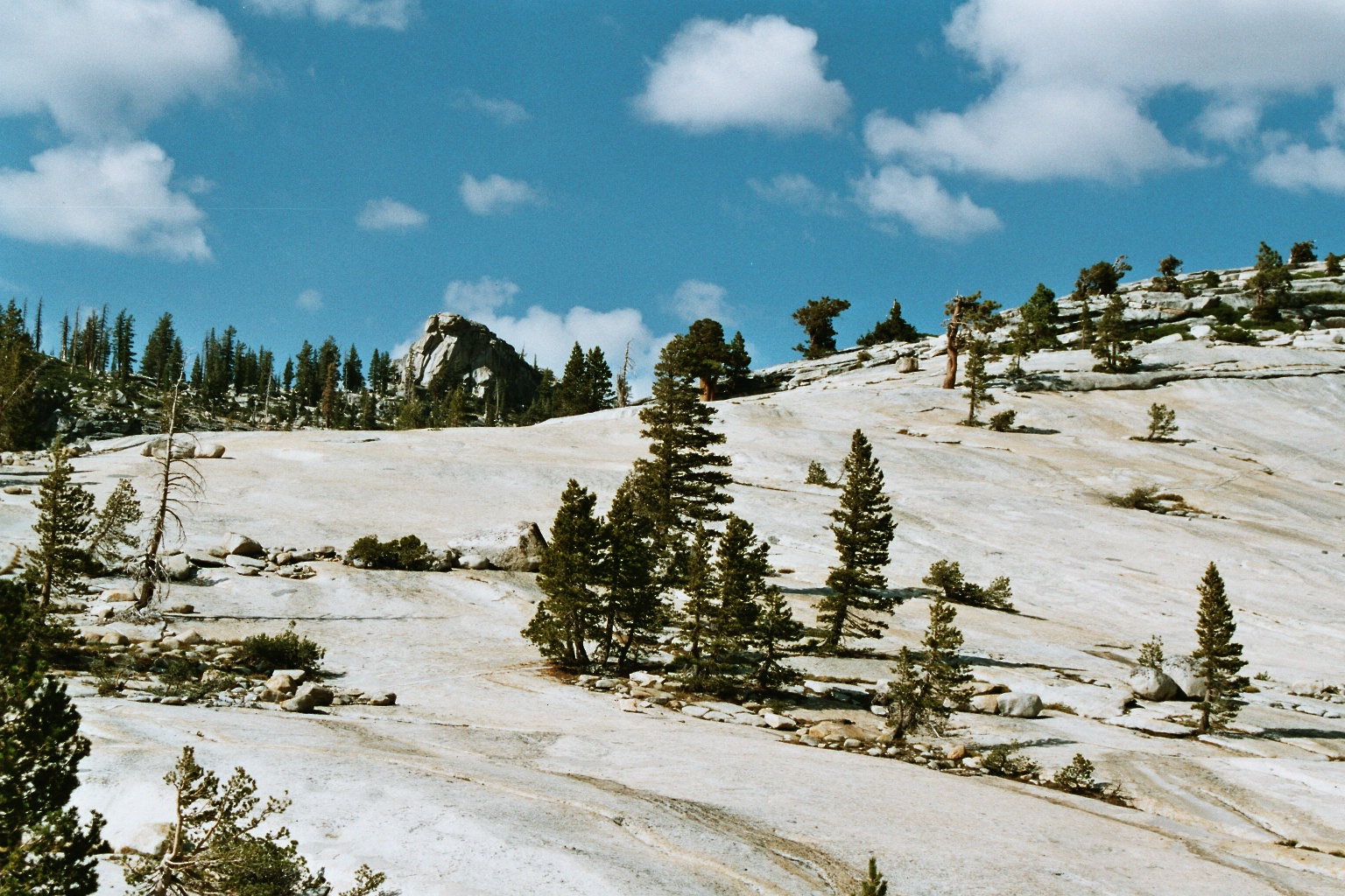 Danach fahren wir wieder abwärts. Hier gibt es auch diese ganz glatten, weißen Felsen.