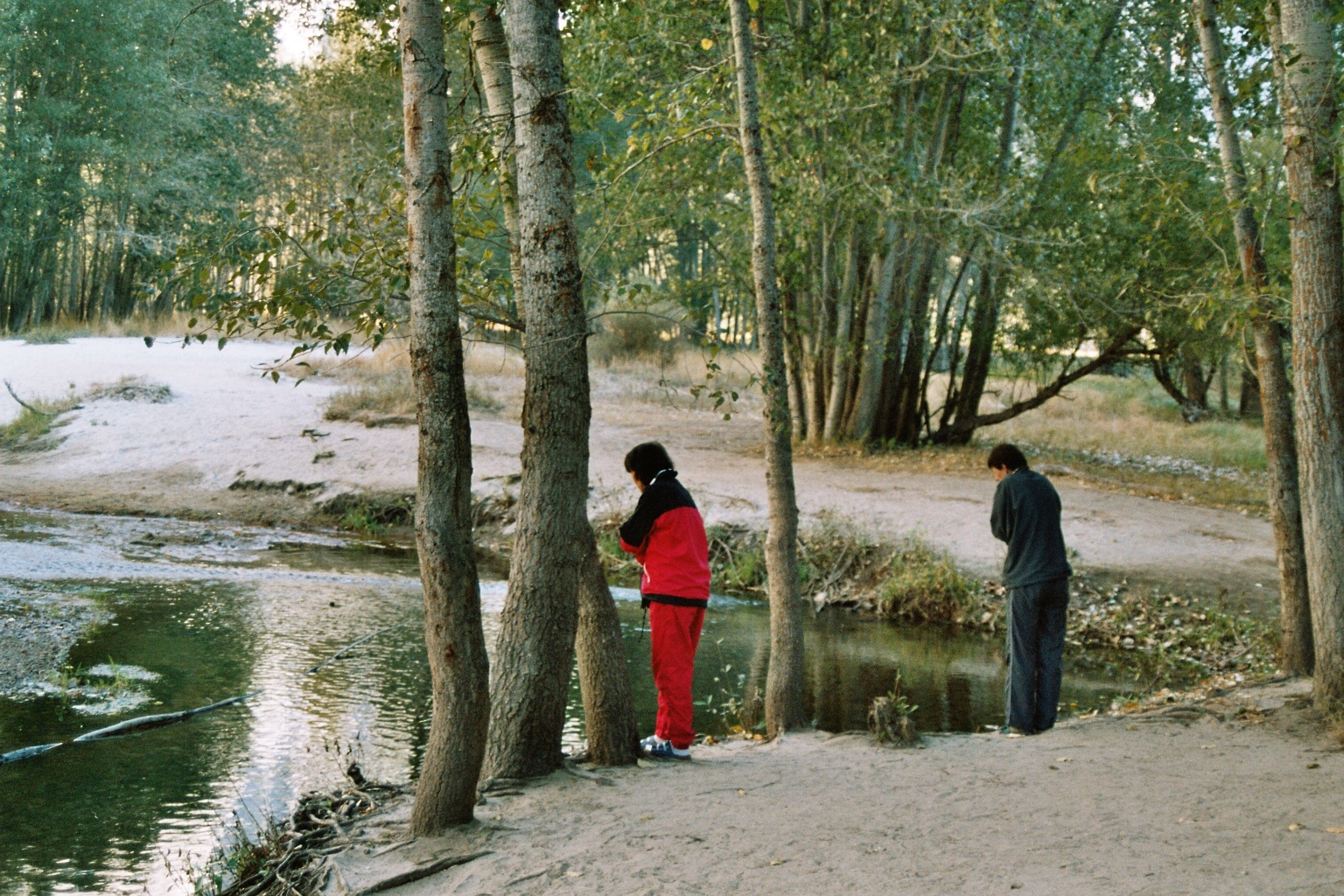 Am Eingang zum Park halten wir an einem See. Das Wasser ist eiskalt. Es ist recht kühl und böig windig