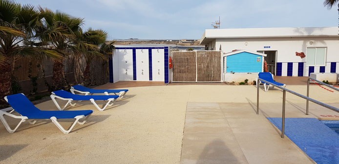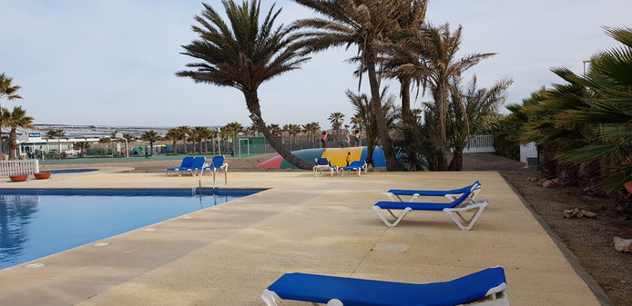Anschließend sind wir noch an den Strand gegangen. Es handelt sich um einen Sand- un Kiesstrand. Danach haben wir uns das Schwimmbad angesehen. Es gefällt uns sehr. Die Außentemperaturen ließen zwar bereits ein Bad zu, jedoch ist uns das Wasser noch zu kalt. Die gepflegte Anlage lädt direkt zum Baden ein.