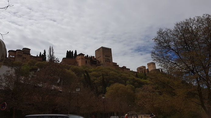 Der Wetterbericht sah für den Bereich um Balerma am heutigen Tage nicht so gut aus. Daher haben wir uns entschieden, mit unserem kleinen Mietwagen nach Granada zur Besichtigung der Alhambra und der Altstadt, Der Vermieter hatte uns den Tipp gegeben, zu den Parkplätzen der Alhambra zu fahren und von dort den Fußweg rund um die Alhambra zu nehmen oder ein Tagesticket für den Bustransfer zu nehmen. Das Befahren der Altstadt mit dem Pkw sei ohnehin nicht erlaubt.