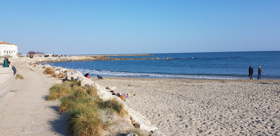 Heute waren wir um 08.45 Uhr auf der Straße in Richtung Süden. Da Sonntag ist, stören auch keine LKW. Die Bahn ist frei.Über Lyon geht es weiter bis zur A 9 und dort weiter Richtung Montpellier und Barcelona. Wir biegen aber vorher ab in Richtung Süden und letztendlich gelangen wir über die D570 nach Saintes Maries de la mer. Meine Frau und ich lieben diesen Ort und freuen uns schon jetzt auf den Wochenmarkt am Montag. Der Wochenmarkt findet Montags und Freitags statt. Man kann dort direkt am Strand mit dem Wohnmobil auf einem Parkplatz stehen. Die Stellplätze sind uns aber zu klein, sie haben keinen Stromanschluss. Auf diesen Plätzen gibt es außerdem keine Duschen und Toiletten. Wir haben uns daher wieder für den Campingplatz "La Brise" entschieden und 2 Nächte gebucht. Auf der Hinfahrt war uns schon der rege Straßenverkehr aufgefallen. Als wir uns auf dem Platz eingerichtet hatten, fuhren wir mit dem Fahrrad in den Ort. Nach kurzer Fahrt sind wir abgestiegen und haben die Räder geschoben. Der Ort war so voll und einige Autofahrer agierten wie Stiere, sodass es uns zu gefährlich erschien weiter mit dem Fahrrad auf der Straße zu fahren, Die Gassen im Ort waren so voll, dass man den Eindruck haben konnte, Paris müsste leer sein. Wir haben die Fahrräder über die Strandpromenade zurück geschoben und dabei einige Fotos geschossen.